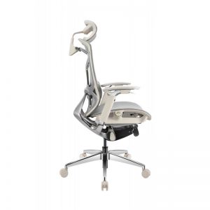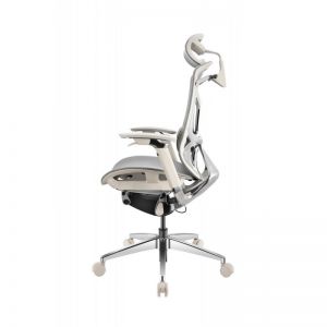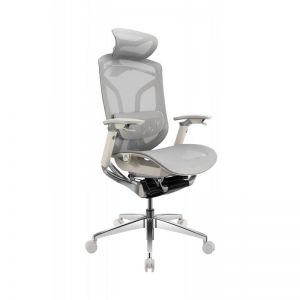 Кресло Falto Leather Premium SL, динамичный поясничный упор, натуральная кожа, каркас серый, белый