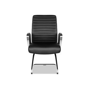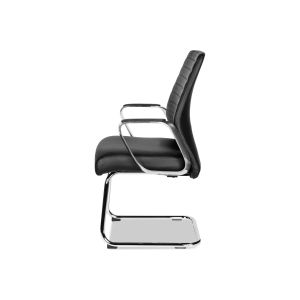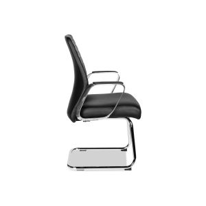 Кресло для посетителей Multi-Office BASEL C Кресло для посетителя низкая спинка на полозьях кожа черная+к/з/дерево темный орех
