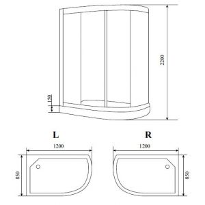 Душевая перегородка Timo TP-1190/03F-8 в узком профиле черный 195*119, стекло матовое 8 мм