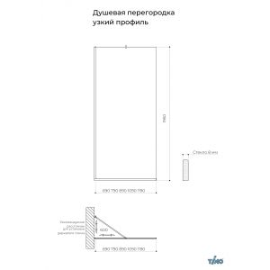 Душевая перегородка Timo TP-890/00F-8 в узком профиле хром 195*89, стекло матовое 8 мм