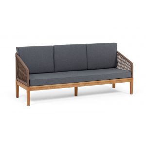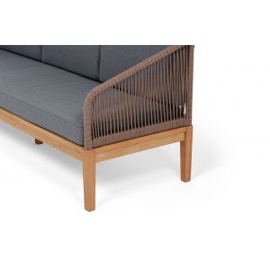 Диван 4SIS "Канны" трёхместный, роуп коричневый круглый, ткань темно-серая 027