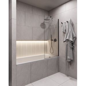 Шторка для ванны Timo TC-90/03C-8 в узком профиле черный 140*90, стекло прозрачное 8 мм