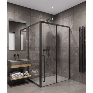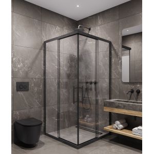 Душевой угол Timo TKSS-90/03C-8, раздвиж 90*90*200, проф черный, стекло проз 8 мм