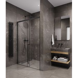 Душевая дверь Timo TD-120/03C-6, раздвижная 195*120, профиль черный, стекло прозрачное 6 мм