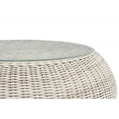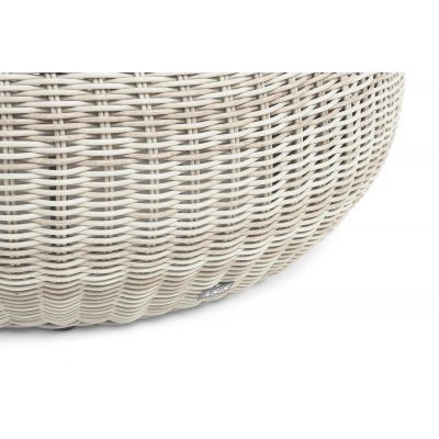 Каркас столика изготовлен из алюминия, вручную оплетенного круглым искусственным ротангом.