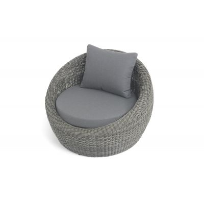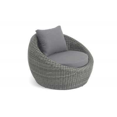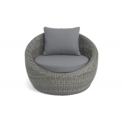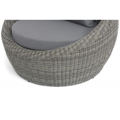 Надежность и износостойкость мебели гарантирует каркас, который сделан из качественного алюминия. Ее дополняет ручное плетение, при изготовлении которого используется искусственный ротанг. Представлена модель в графитовом цвете.