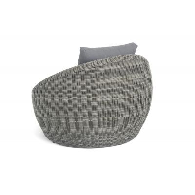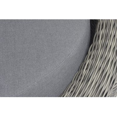 В комплекте с уличным ротанговым креслом идут мягкие подушки со съёмными чехлами серого оттенка. Они пошиты из полиэстера, который не боится повышенной влажности благодаря наличию влагоотталкивающей пропитки. Плотность ткани составляет 300гр/м2.