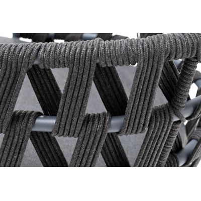 Каркас вручную оплетен темно-серым роупом - эластичными синтетическими лентами из высокопрочных полиэфирных волокон.