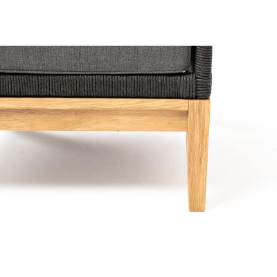 Каркас кресла оплетен синтетическими лентами, выполненных из полиэфирных волокон высокой прочности (роуп). Цвет плетения - темно-серый. Основание - натуральный дуб.