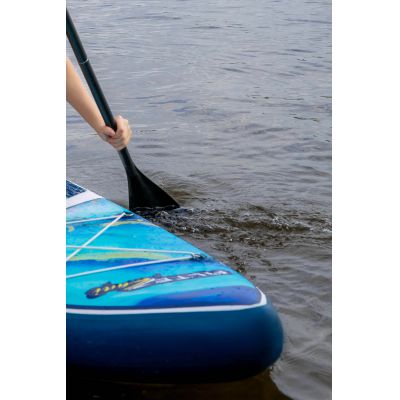Одним из ключевых достоинств сапборда SUP-002 является его противоскользящая поверхность, которая обеспечивает надежное сцепление с ногами в любых погодных условиях.