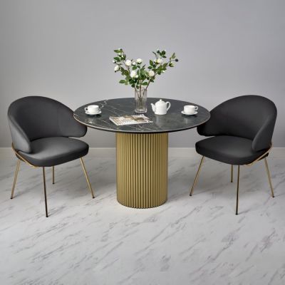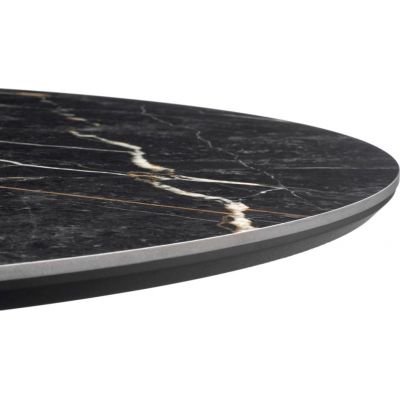 Стильный нераздвижной стол Aura – идеальное сочетание элегантности и функциональности. Стол Aura обладает глянцевой премиальной круглой столешницей из керамики, имитирующей чнрный мрамор, диаметром 110 см.