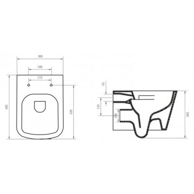 Подвесной унитаз Albano P-trap безободкового типа из фаянса.