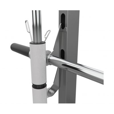 Рама выдерживает нагрузку до 300 кг. Гриф шириной 203 см с замком lock-jaw с рифлёным покрытием регулируется в 7-ми положениях по высоте. Гриф двигается по чёткой траектории, благодаря чему вместо контроля над положением тела, вы сможете сосредоточиться на технике выполнения.