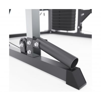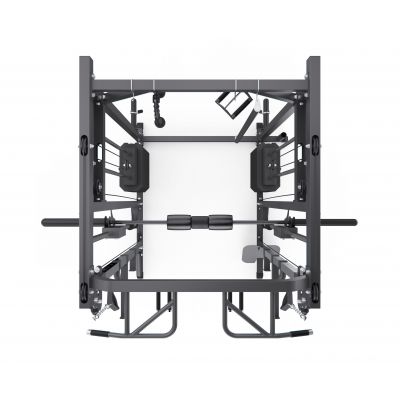 Конструкция объединяет прочие элементы рамы, балки, стойки, рукояти, держатели и предохранители, формируя единую многофункциональную и надёжную систему. Рама выполнена из стального профиля 75 х 50 х 1,5 мм, что обеспечивает высокую жёсткость и устойчивость конструкции при работе с большими весами и гарантирует безопасные и разнообразные тренировки.