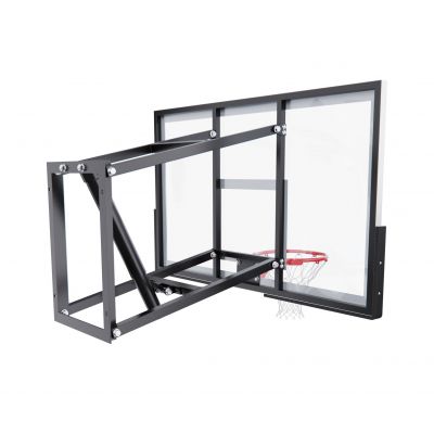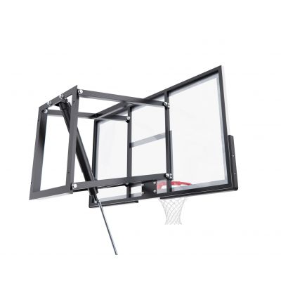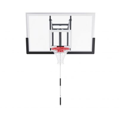 Щит изготовлен из прочного поликарбоната толщиной 3 мм — материала, обеспечивающего хороший отскок мяча и устойчивость к ударам. Его размеры — 136 х 80 см, что делает его максимально приближенным к профессиональному оборудованию. Регулируемый вынос щита (51–55,5 см) повышает безопасность и удобство во время игры. Дополнительную безопасность обеспечивает защита Poly Pade, установленная по нижнему краю щита.