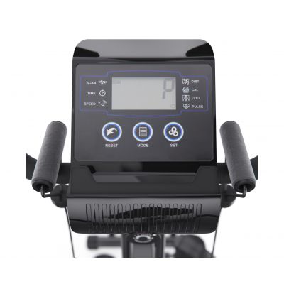 | Встроенный монохромный LCD-дисплей отображает ключевые параметры - скорость, время, дистанцию, пульс, количество сожженных калорий и режим сканирования данных. | |