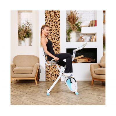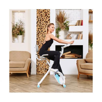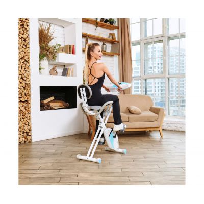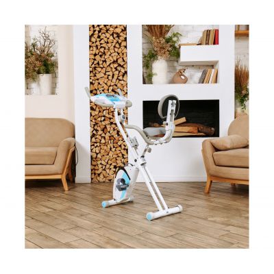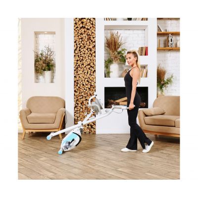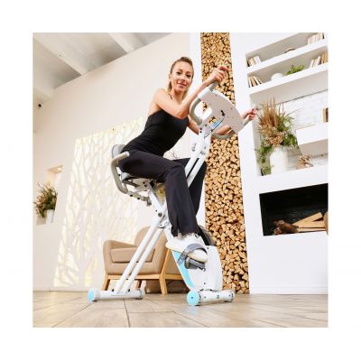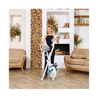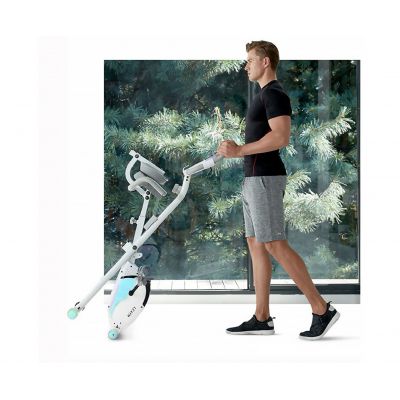 X-Bike LEXPA имеет компактные размеры в сложенном виде — 23 x 40 x 117 сантиметров, что позволяет легко хранить его даже в небольшом помещении. Транспортировочные ролики и компенсаторы неровности пола обеспечивают стабильность и безопасность во время занятий.