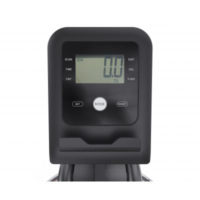 В комплекте с гребником идёт воронка, насос и 2 батарейки типа AAA. На LCD-дисплее можно отслеживать ключевые параметры: время, количество гребков, гребки в минуту, дистанцию, пульс, калории или режим сканирования всех параметров.