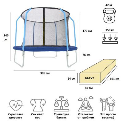 | Оптимально подходит как: | большие, для дачи, для взрослых, до 150 кг, с защитной сеткой, с лестницей, уличные, 10 футов (305 см) |