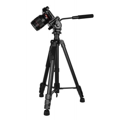 Штатив отличается малым весом и довольно компактен в сложенном состоянии: такой аксессуар можно брать с собой на выездные съемки или в длительные путешествия. Для удобства транспортировки в комплект входит специальный чехол.