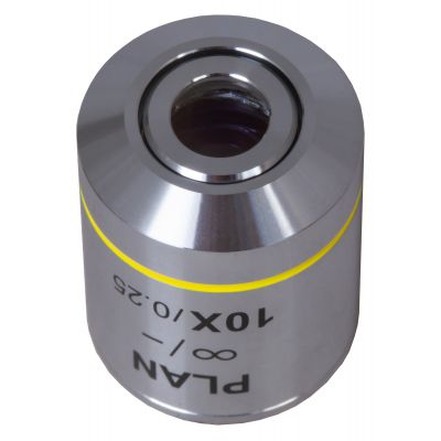 Планахроматический объектив Levenhuk MED 10x/беск – аксессуар для микроскопов, длина тубуса которых скорректирована на бесконечность. Подобные микроскопы широко применяются в лабораториях, так как позволяют свободно использовать дополнительные исследовательские инструменты – поляризаторы, фазово-контрастные устройства и другие.