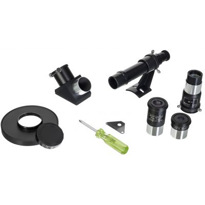 Оптика выполнена из качественного стекла с многослойным просветлением, которое обеспечивает высокое светопропускание и правильную цветопередачу. Диаметр объектива равен 70 мм, фокусное расстояние – 500 мм. В комплект входят 2 окуляра 10 мм (50x) и 25 мм (20x), а также дополнительные оптические аксессуары. Линза Барлоу 2х удваивает кратность системы с любым установленным окуляром. Диагональное зеркало позволяет получить неперевернутое изображение для удобного наблюдения за наземными объектами: птицами, животными или элементами ландшафта.