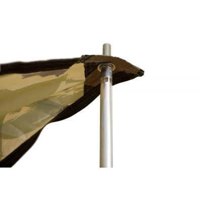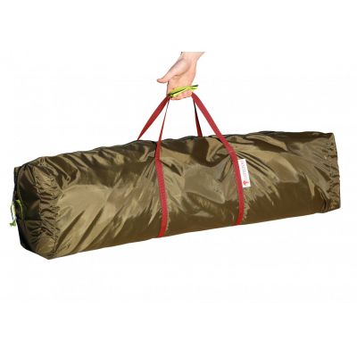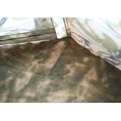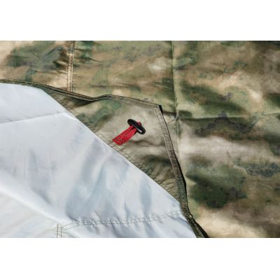 Тент палатки пошит из прочной ткани Polyester Oxford 210D с влагостойкостью не менее 5 000 мм вод. столба. Швы тента проварены изнутри герметизирующей лентой. Молнии оконных и дверных проемов оснащены внешними защитными планками, обеспечивающими им защиту от дождя и от продувания ветром. Нижняя часть палатки оснащена внешней юбкой, которая обеспечивает защиту от задувания и позволяет, при необходимости, окопать палатку по периметру.