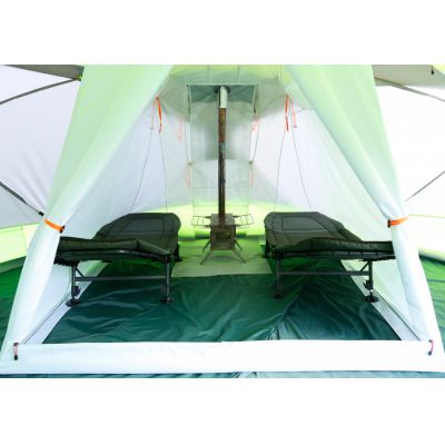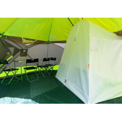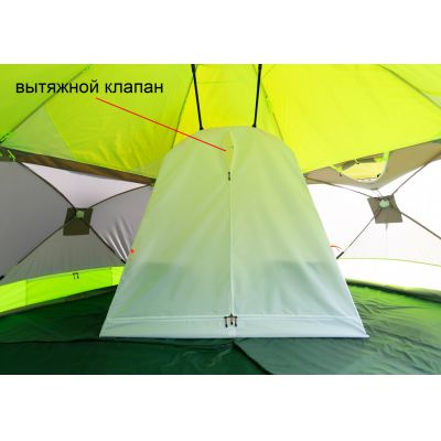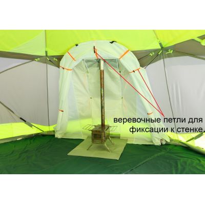 Внутренняя капсула КубоЗонт 6 – это специализированный аксессуар, формирующий двуспальную теплую комнату или банный отсек в палатке ЛОТОС КубоЗонт 6. Капсула устанавливается изнутри предварительно раскрытой палатки и крепится к специально оборудованной для этого стенке (одной из шести), оснащенной окном с универсальной системой крепления съемных элементов и приточным клапаном.