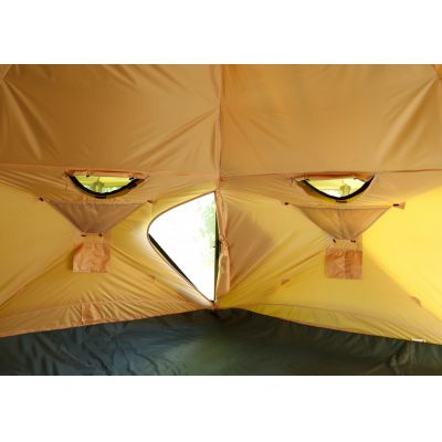 Внутри просторно и уютно! Вы надежно защищены от любой непогоды и от навязчивых насекомых Многослойный тент с функцией термоса сохраняет внутреннее тепло в холодную погоду, а в жару дарит прохладу. Палатка КубоЗонт 6-У – это длительный отдых с комфортом в большой компании без забот и проблем!
