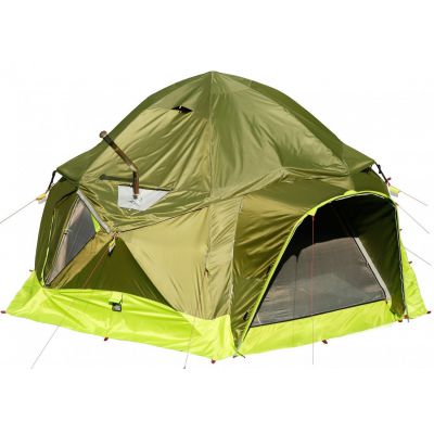 Комментарий: палатка большая по размеру и высокая. Она имеет 4 входавыхода, материалы прочные. Есть сумка для ее хранения.