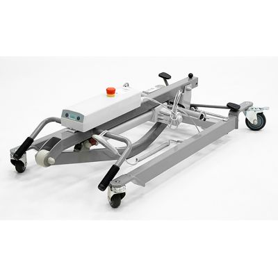 Электрический прикроватный подъемник, выполненный на металлической раме, складывающейся для удобства хранения и транспортировки. Раздвижные передние колёсные опоры высотой всего 115 мм для максимальной устойчивости и возможности заезда под низкую мебель.