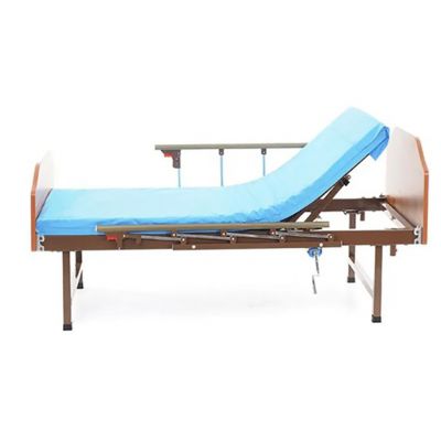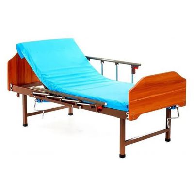 Экономичная двух-функциональная кровать с переворотом (поворотом) больного с помощью винтовых регулировок ложа и независимыми винтовыми регулировками угла наклона спинной секции.