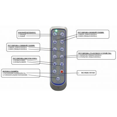| Кровать комплектуется надкроватным столиком, инфузионной стойкой, штангой для подтягивания и двумя вариантами спинок (полукруглыми либо прямоугольными). | |