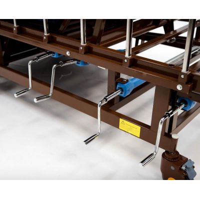 С помощью вращения рычагов, Вы можете поднимать стороны ложа и переворачивать массивного пациента во избежание возникновения нарушения кровообращения и возникновения пролежней.