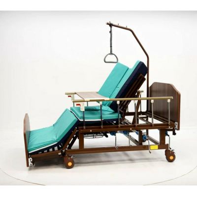 Ножная части кровати опускается вниз, позволяя кровати принять положение кардио-кресла, используемое в эффективной терапии различных заболеваний.
