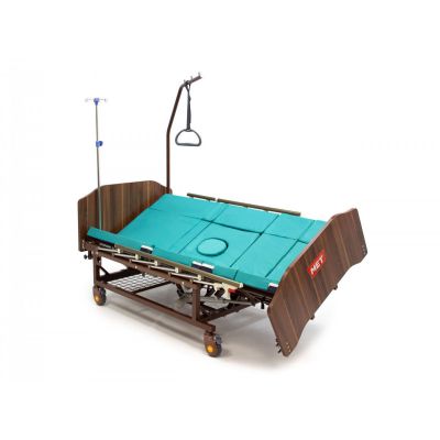 Функциональная кровать МЕТ EVA выполнена в домашней, коричневой цветовой гамме и снабжена спинками с контрастной деревянной текстурой ЛДСП, сочетающимися практически с любой домашней мебелью коричневой цветовой гаммы. Помимо того, что кровать не будет контрастировать с Вашей домашней обстановкой, оказываясь эдаким островком больничной казённости, MET EVA не будет оказывать на Вашего родственника негативное психологическое воздействие, помещая больного в ЛПУ посередь родного дома.