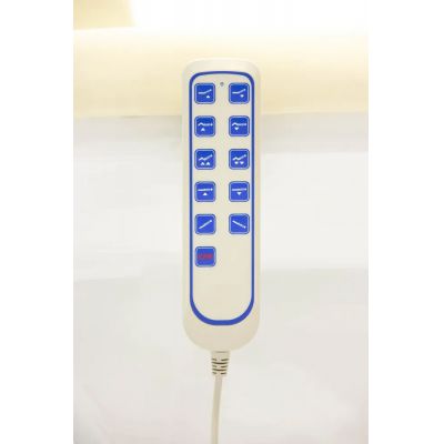 Электрическое кресло MET LK-100 предназначено для проведения медицинских осмотров, диагностических процедур и сеансов массажа. Модель оснащена тремя функциональными секциями: спинной, тазобедренной и ножной. Регулировка спинной и ножной секций, высоты сиденья и положения Тренделенбурга осуществляется с помощью пульта управления или ножных педалей.
