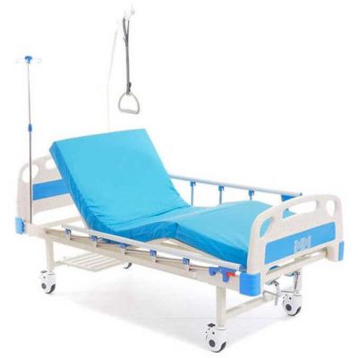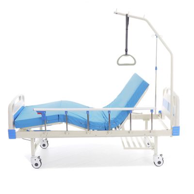 Медицинская четырёхсекционная кровать с независимыми червячными регулировками изголовья и ножных секций.