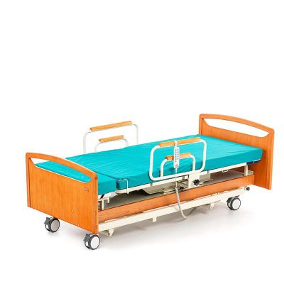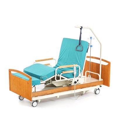 Медицинская кровать с электрическим приводом и поворотным креслом удобна как для пациента, так и для человека, ухаживающего за ним.
