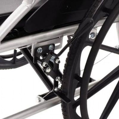 Кресло-коляска пассивного типа, снабжённое съёмным удлинителем откидной спинки и поднимающимися подножками, позволяющими в считанные секунды организовать лежачее место для медицинских процедур или отдыха больного без утомительных передислокаций.