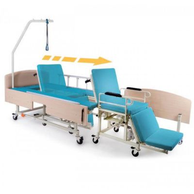 Электроприводная односпальная функциональная кровать MET INTEGRA 3 в 1, шириной 1 м, позволяющая с комфортом осуществлять высадку в кресло каталку для дома и улицы, снабжённое санитарным оснащением
