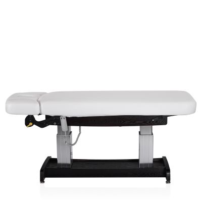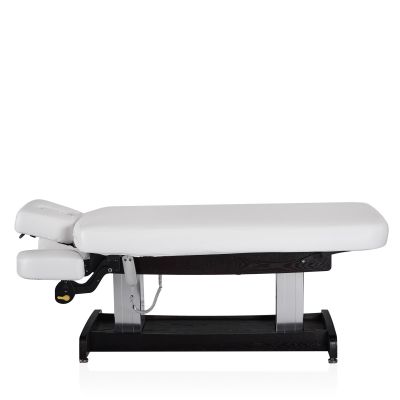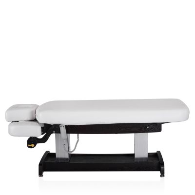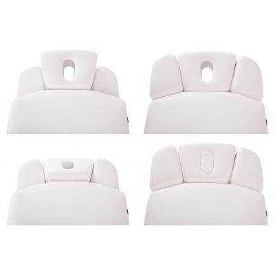 Конструкция стола включает в себя подъёмный механизм, обеспечивающий регулировку высоты для удобства как клиента, так и специалиста. Подголовник стола имеет возможность регулировки по высоте и углу наклона, что позволяет адаптировать его под индивидуальные потребности и предпочтения клиента, обеспечивая оптимальную поддержку и комфорт во время процедур.