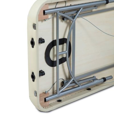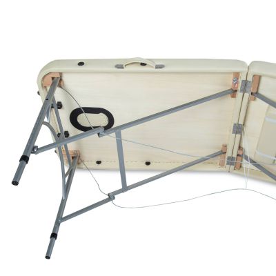 Складной массажный стол Premium AL 2 имеет приятную на ощупь «Skin-touch» обивку с мягким наполнителем толщиной 6 см. Однако, главная особенность этого стола – его особо легкая поддерживающая конструкция и регулируемые по высоте ножки, сделанные из алюминия.