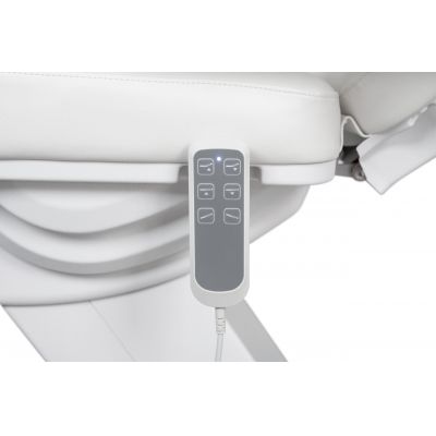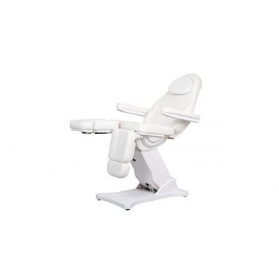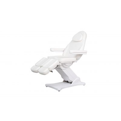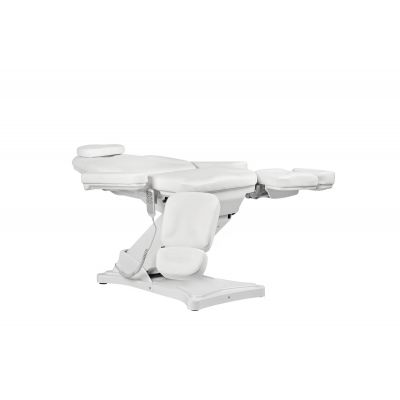 Высококомфортабельное кресло. Оснащено тремя электромоторами для контроля высоты, угла наклона спинки и ножной части. Подвижные подлокотники, подголовник с отверстием для лица. Высококачественная и легкоочищаемая обивка из прочной экокожи.