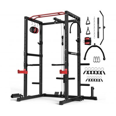 Тренажёр подходит для приседаний, жима лёжа, становой тяги, упражнений со штангой, а также для развития спины, груди, рук и ног, заменяя полноценный спортзал дома. Защитные рамы выдерживают повышенные нагрузки, обеспечивая безопасность во время силовых тренировок. Телескопическая труба, стойка для хранения блинов и прочие элементы конструкции обладают высокой прочностью, что делает тренажёр идеальным для регулярных домашних занятий.