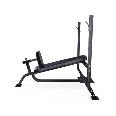 Сиденье скамьи для жима рассчитано на нагрузку до 250 кг, спинка до 280 кг, а держатели штанги максимум до 100 кг. Профиль рамы 50 х 50 х 2 мм делает скамью прочной и устойчивой. Три ножки оснащены резиновыми нескользящими накладками, что гарантирует надежное сцепление с полом и безопасность при выполнении силовых упражнений. Размер в рабочем виде составляет 165 х 128 х 121 см, что делает скамью компактной и удобной для домашнего использования.