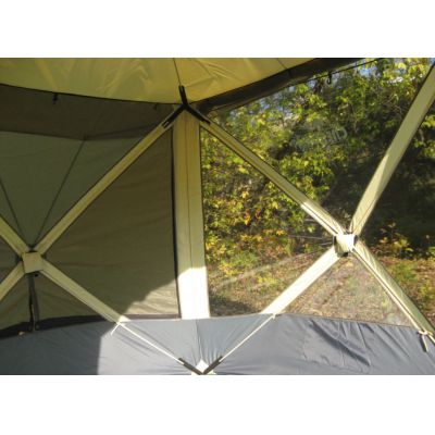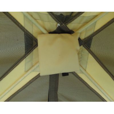 В нижней части к шатру пришита внешняя юбка. Внутри имеются карманы для хранения мелочей. Для хорошего освещения внутреннего пространства на каждой из сторон шатра располагаются большие окна с москитной сеткой для защиты от насекомых, а для защиты от дождя они закрываются занавесами.