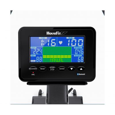 На LCD-дисплее с синей подсветкой отображаются все необходимые параметры: скорость, время, дистанция, сожжённые калории, мощность (ватт), обороты в минуту и пульс (для измерения пульса необходимо использовать нагрудный ремень, не входит в комплект). Консоль включает 6 тренировочных программ: ручной режим, начинающий, продвинутый, спортивный, кардио и режим энергопотребления (ватт). Поддержка Bluetooth и приложение iConsole позволяют отслеживать прогресс в режиме реального времени и сохранять данные тренировок.