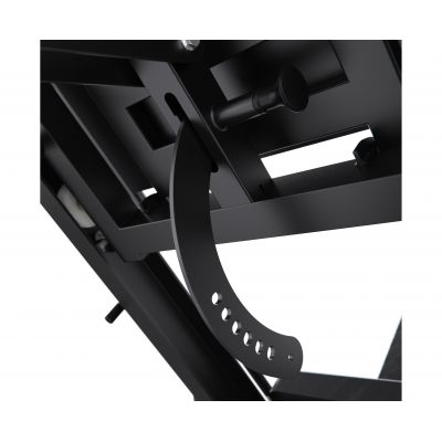Конструкция позволяет регулировать положение под рост пользователя, а также переставлять спинку, что даёт возможность выполнять различные упражнения в режимах жима ногами и гакк-приседаний. Тренажер имеет прочную раму с профилем 75 х 75 х 3 мм, что гарантирует надежность и долговечность конструкции.