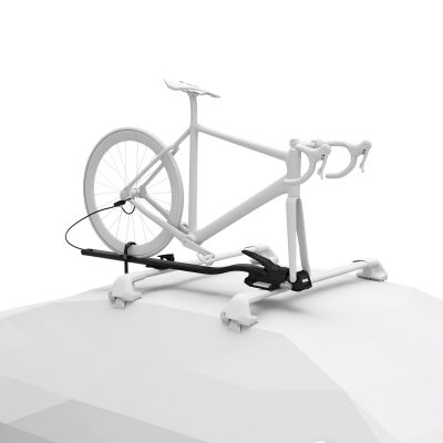 Велосипед фиксируется на велосипедном креплении, а само крепление — на багажнике для крыши
